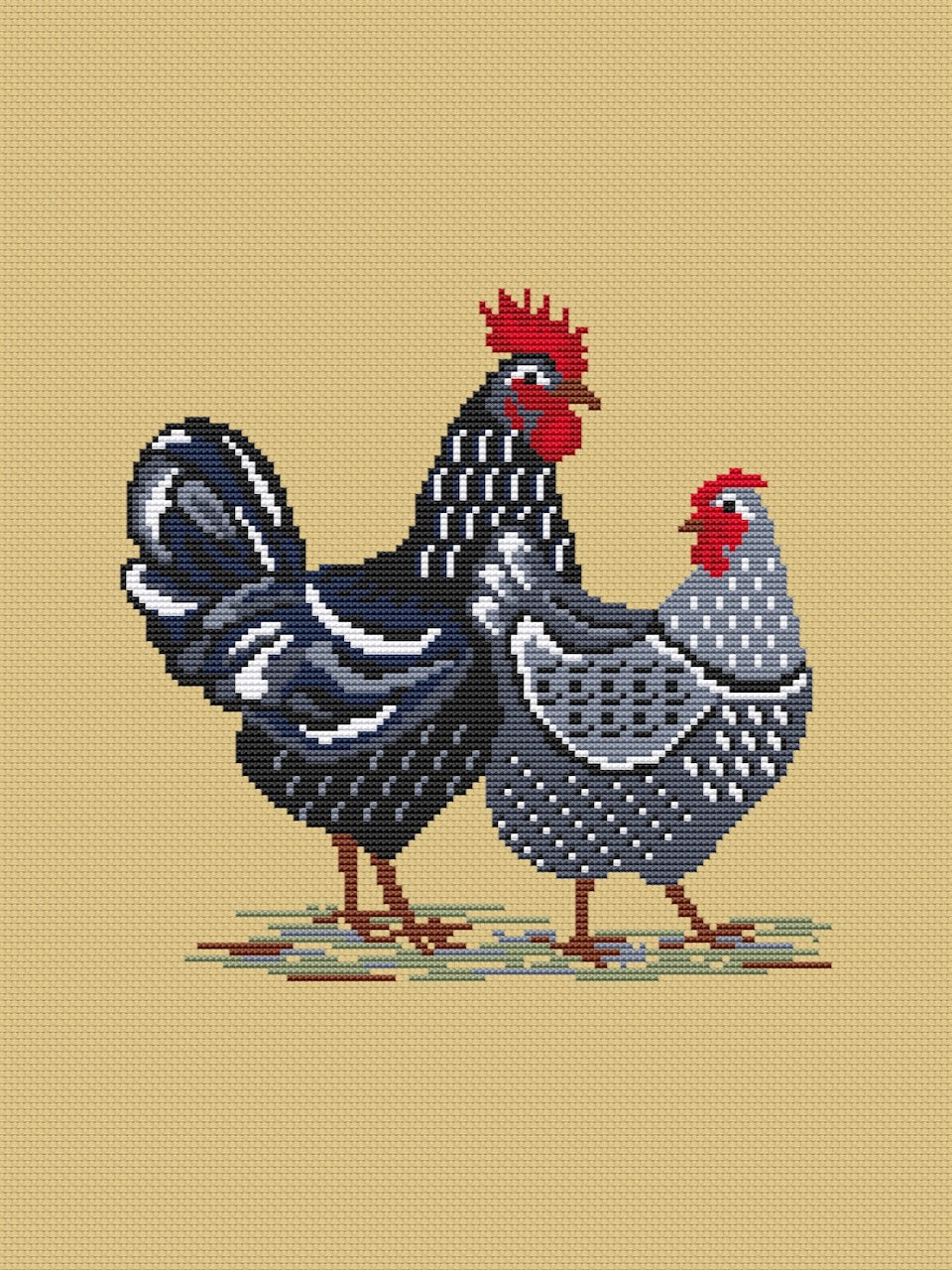 Black Rooster and Hen - cross stitch pattern