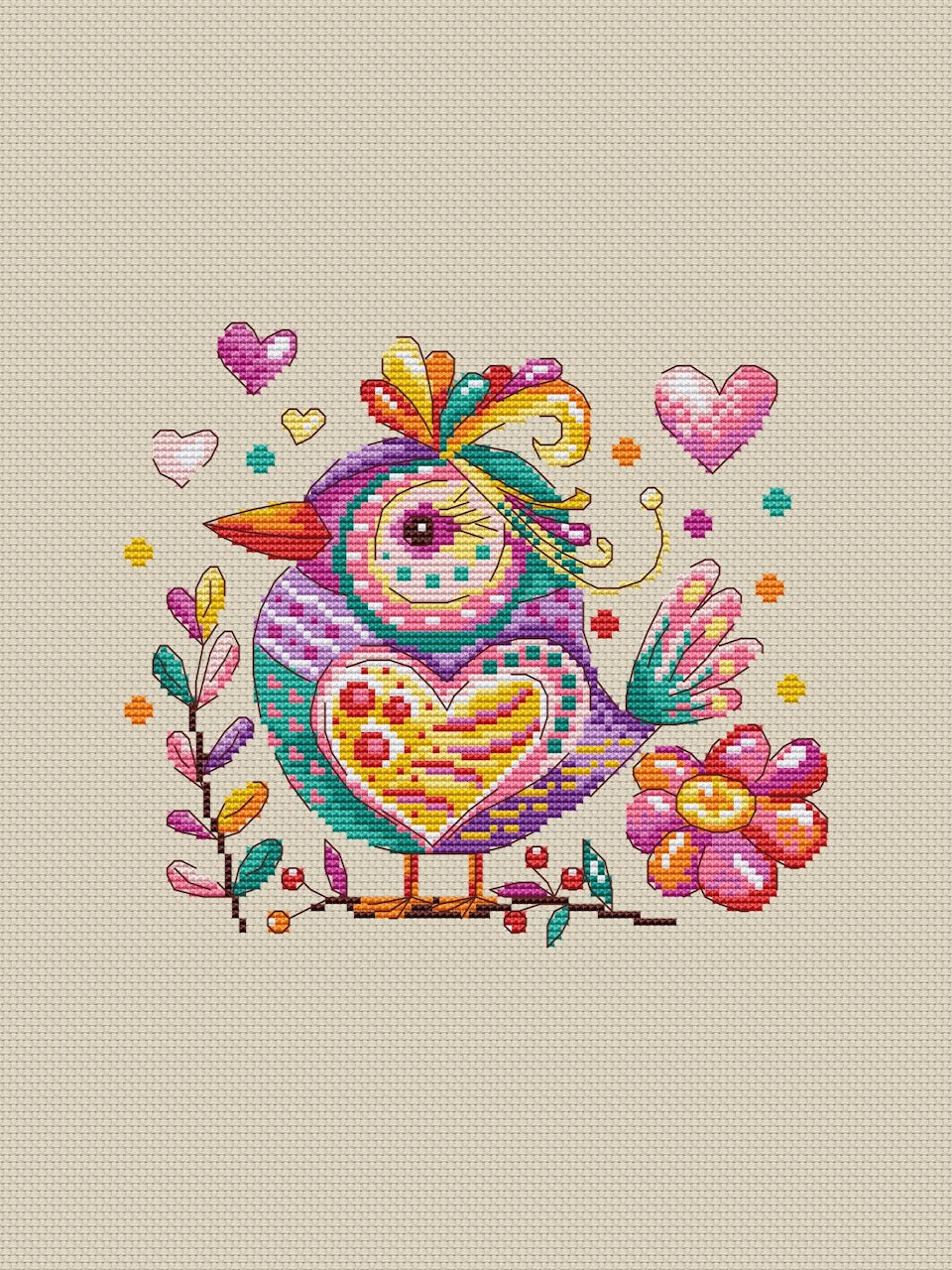 Stitch a whimsical candy-colored bird with this charming cross stitch pattern. Perfect for beginners and experienced stitchers alike, this easy-to-follow chart features a delightfully quirky bird design in vibrant pink and yellow hues. The straightforward pattern makes it an ideal project for building confidence or enjoying a quick, satisfying stitch. Add a playful touch to your embroidery collection with this fun, lighthearted design that brings joy to any space.