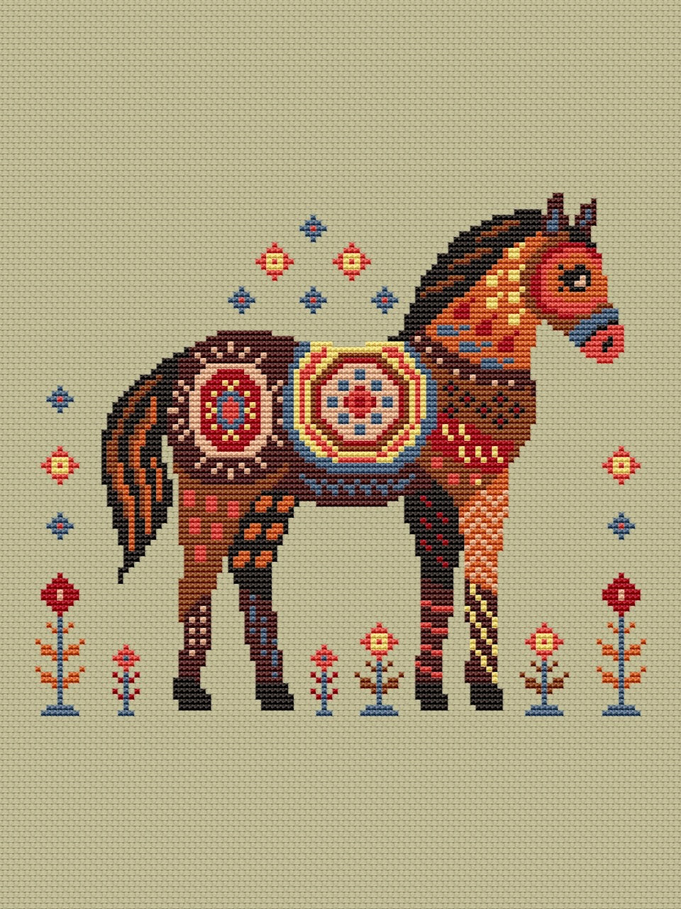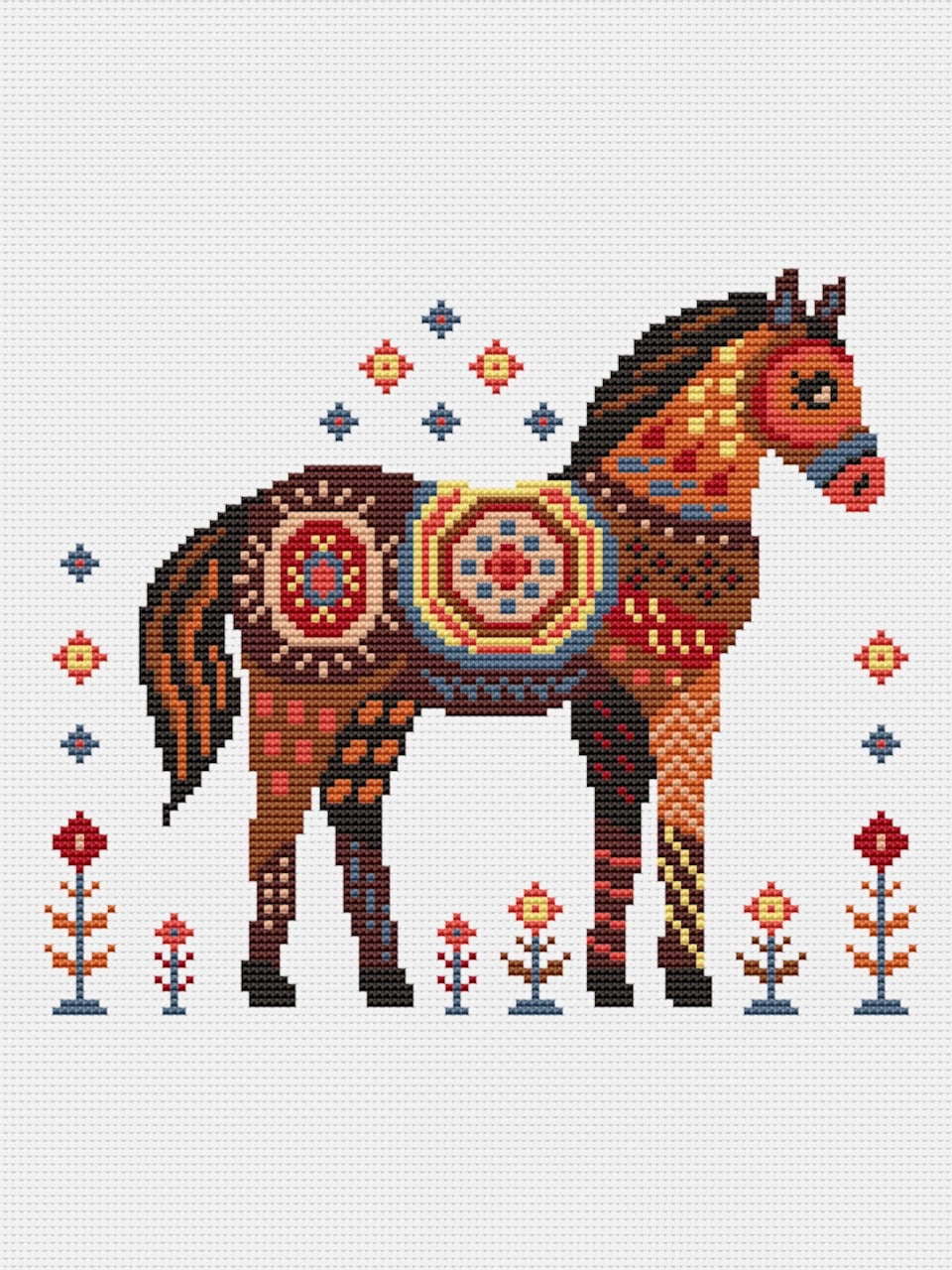 Celebrate the upcoming 2026 with this expertly designed Dark Horse cross stitch pattern. Featuring a brown fire horse surrounded by delicate flowers, this pattern symbolizes strength and renewal. Its clear, easy-to-follow chart makes it perfect for stitchers of all skill levels seeking a meaningful project with cultural significance. Create a striking piece that honors the spirit of the year while honing your craft.