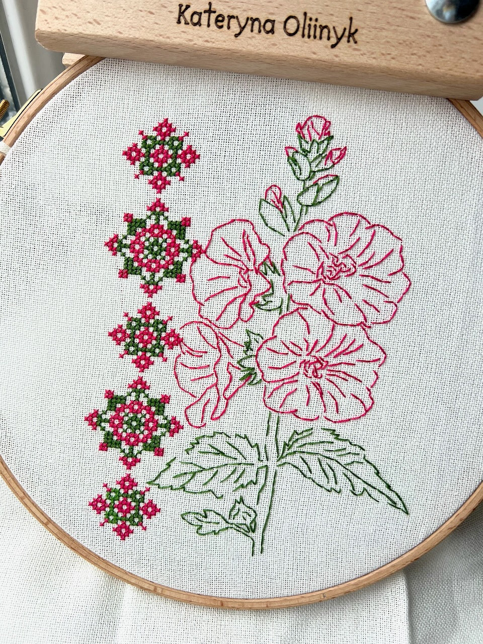 Learn the art of cross stitching with this easy folk modern pattern featuring beautiful pink blackwork flowers Hollyhocks. Perfect for beginners, this pattern will add a touch of elegance to any embroidery project. Create stunning pieces with our expertly designed cross stitch pattern.