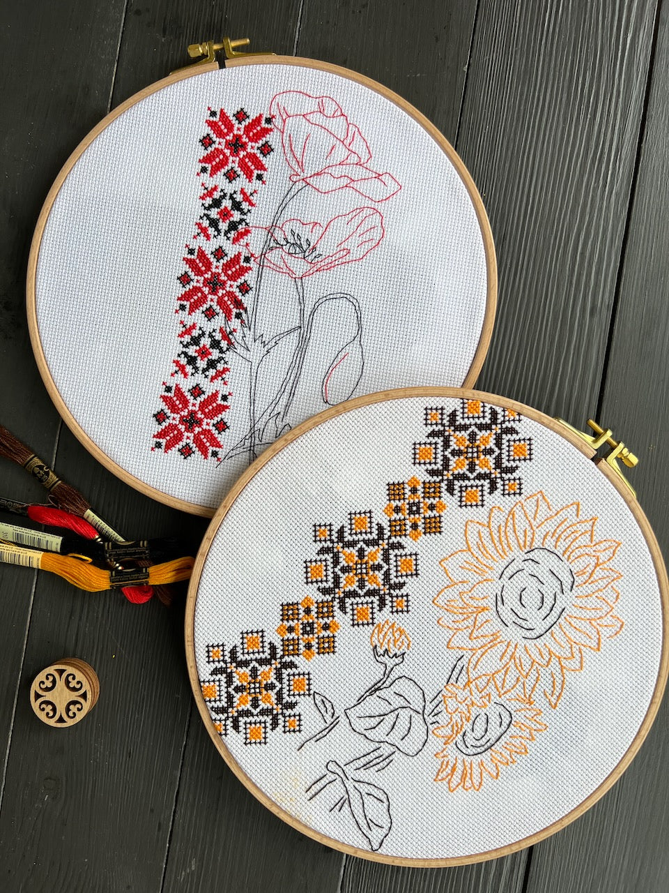 This pattern combines modern and ethical embroidery - a simple ornament and blackwork.